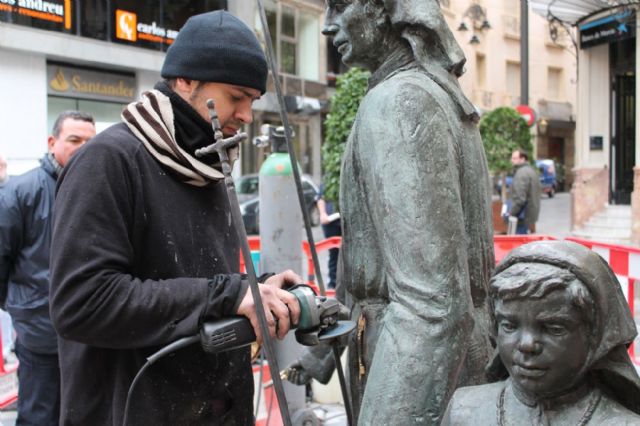 El servicio de Parques y Jardines de la concejalía de Urbanismo e Infraestructuras del Ayuntamiento de Cartagena ha procedido esta mañana a la restauración del Monumento al Procesionista situado en la plaza de San Sebastián.