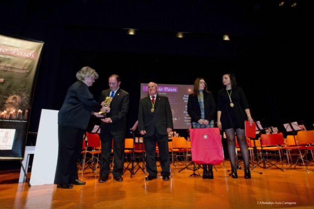 La Asociación de Mujeres Cofrades de Cartagena celebró el sábado su décimo aniversario con la gala de entrega del Premio Pasos 2015, que tuvo lugar en el Auditorio El Batel y en la que se distinguió a la Pontificia y Real Cofradía del Espíritu Santo, Santísimo Cristo del Humilladero y Santísima Virgen María Corredentora, de Cáceres.