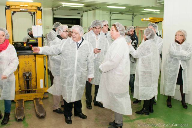 La alcaldesa de Cartagena, Pilar Barreiro, acompañada de los presidentes de COEC y Cámara de Comercio, Pedro Pablo Hernández y Miguel Martínez, respectivamente, han recorrido las enormes instalaciones de Frigoríficos Morales, un nuevo ejemplo de la calidad empresarial que hay en Cartagena. También les han acompañado durante la visita, el concejal de Empleo, Joaquín Segado y el vicealcalde del municipio, José Cabezos.