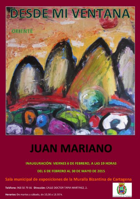 Juan Mariano, artista murciano, presenta Desde mi ventana, un conjunto de series creadas por el artista de 2009 a 2015 y que estará presente en la sala de exposiciones La Muralla Bizantina. Oriente será la serie protagonista, la muestra representa un mismo paisaje pero en momentos distintos, elaborado bajo emociones diferentes.