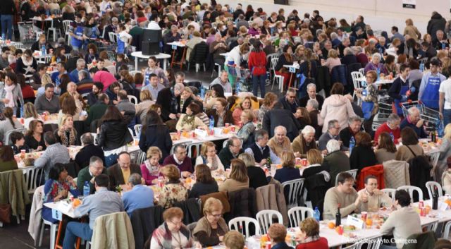 Cerca de mil personas consiguió reunir este domingo la ONG Manos Unidas en la VII Paella Solidaria que se celebró en el pabellón municipal del Polígono Cabezo Beaza, con el objetivo de recaudar fondos para sus proyectos solidarios.
