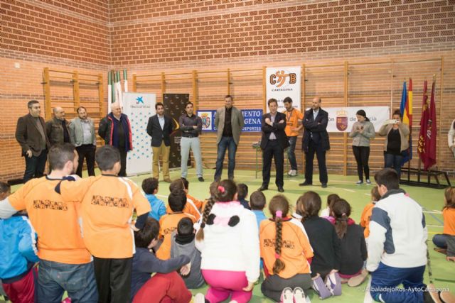 Los alumnos de la Escuela de Balonmano que se desarrolla en el Pabellón Santa Lucía, recibieron el viernes la visita del director general de la Actividad Física y el Deporte, Antonio Peñalver, el concejal de Deportes, Diego Ortega, y miembros de la Fundación La Caixa y el Club de Amigos del Balonmano de Cartagena, quienes fueron testigos de la jornada de entrenamiento.