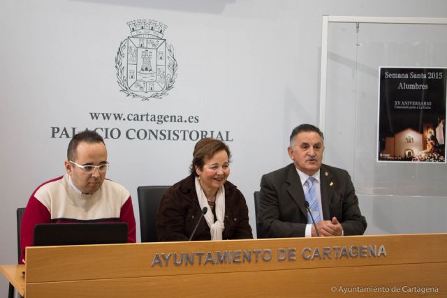 La imagen de la Virgen de la Caridad de Alumbres celebra este año su 15° aniversario, de ahí que la diputación cartagenera haya querido dedicarle este año su Semana Santa, tal y como puede verse en el cartel anunciador, que se ha presentado hoy miércoles, junto con los actos que se van a celebrar con motivo del aniversario.