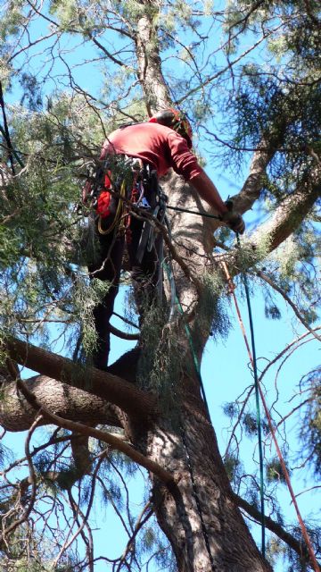 Esta actuación se incluye en el proyecto de Conservación de Arbolado Monumental de la Región de Murcia, financiado por La Caixa, y se ha llevado a cabo sobre este ejemplar de Tetraclinis articulata o Sabina de Cartagena, que se puede considerar padre de muchas de las repoblaciones hechas en la Región desde mediados del siglo XX, así como de la propagación de esta especie por los jardines públicos del municipio.