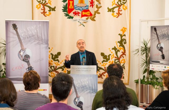 Ãngel Haro, (Valencia, 1958) artista plástico con una dilata experiencia como escenógrafo y director de arte, ha sido el encargado del diseño del cartel anunciador de La Mar de Músicas, Especial Chile, cartel que se ha presentado hoy viernes a los medios de comunicación en el Palacio Consistorial de Cartagena.