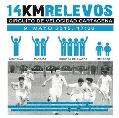Una nueva carrera popular arranca el 9 de mayo, a partir de las 17,00 horas, en Cartagena, la prueba 14 Km Relevos, organizada por el Club 360 Mar Menor Sport y Club Atletismo Mandarache con la colaboración de la Concejalía de Deportes del Ayuntamiento de Cartagena, que tendrá como escenario el Circuito de Velocidad.