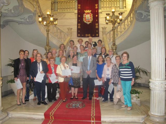 Una treintena de alumnas del primer Curso de Alimentación Correcta, organizado por la Concejalía de Atención Social del Ayuntamiento de Cartagena dentro de su programa para mayores, han asistido hoy martes al acto de clausura y entrega de diplomas que se ha celebrado en la Sala de Ceremonias del Palacio Consistorial, y que ha presidido el edil del área, Antonio Calderón.