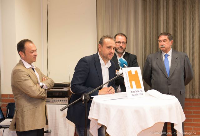 La feria gastronómica, evento que organizan el Ayuntamiento de Cartagena y la Cadena COPE, se ha presentado esta mañana en la Escuela de Hostelería, presentación a la que han acudido el concejal de Comercio en funciones, Mariano García, junto al director de eventos de Cadena COPE Región de Murcia, Manuel Sotomayor, y José Miguel Gómez, relaciones externas de Estrella de Levante.