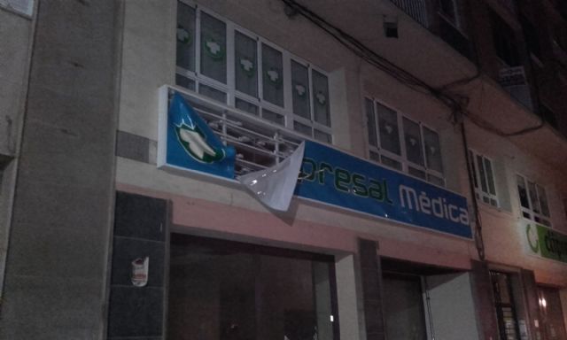 Las llamas también afectaron al cartel publicitario de un servicio de prevención de riesgos laborales, situado en los bajos de un edificio.
