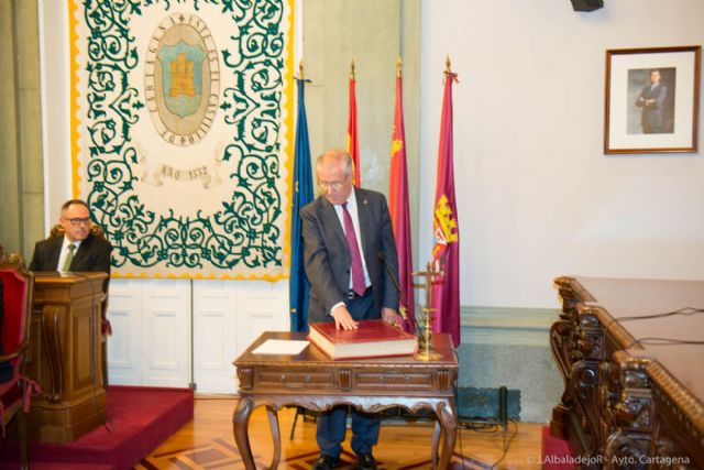 Las primeras palabras del nuevo alcalde de Cartagena han ido destinadas al amor por la ciudad: Es mucho mayor el amor que la mayoría de los presentes sentimos por nuestro pueblo, por nuestra tierra, y que ese amor nos llevará a conseguir esa ansiada regeneración democrática.