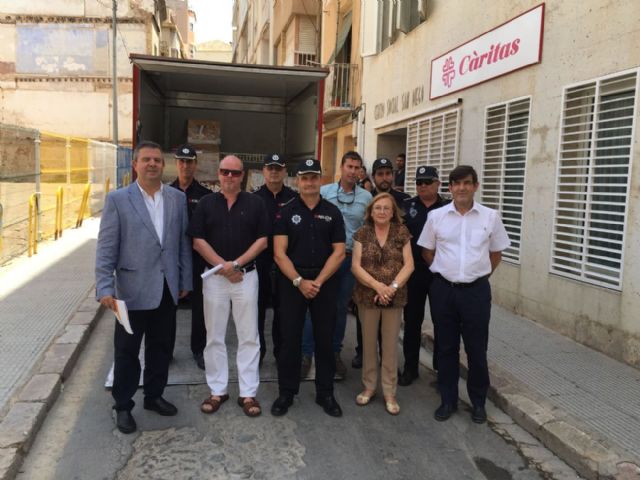 La ONG Implicados de la Policía Local de Cartagena en colaboración con la comparsa de Carnaval de Ciudad Jardín hicieron ayer jueves entrega de 5000 kilos de alimentos con la colaboración de GM, al centro de Cáritas San Diego, fruto de una campaña dirigida a proteger a niños de familias desfavorecidas de Cartagena, principalmente aquellas en riesgo de exclusión social.