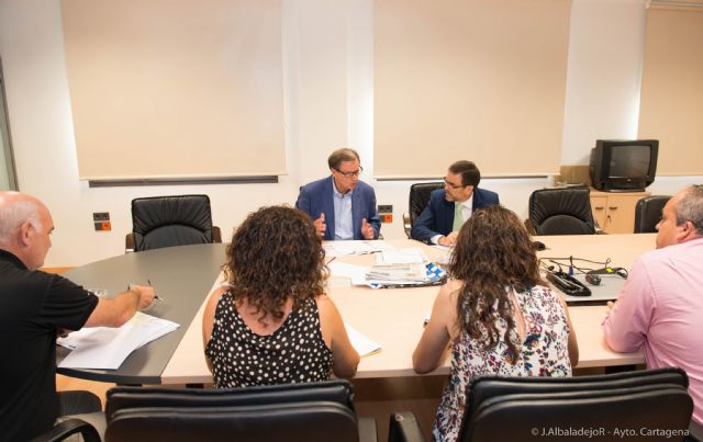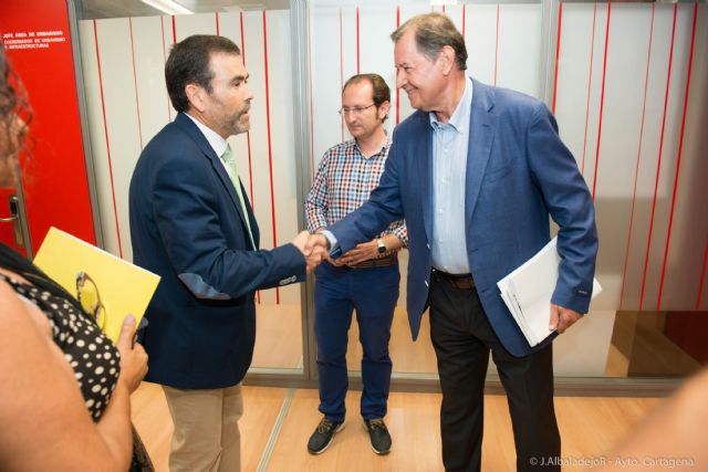 El jefe de Demarcación de Costas, Andrés Martínez Muñoz ha visitado esta mañana el Edificio de San Miguel para reunirse con el alcalde de Cartagena, José López, el concejal del Área de Transparencia y Buen Gobierno, Participación, Descentralización y Festejos, Juan Pedro Torralba y la concejala delegada de Industria, Turismo, Agricultura, Pesca y Desarrollo Rural, Obdulia Gómez. El encuentro ha servido como primera toma de contacto y presentación, aprovechando para tratar temas de importancia como los espigones de Los Urrutias, la ordenación de costas o la explotación de chiringuitos, entre otros.