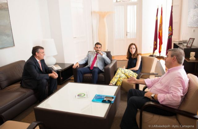 El director de Repsol de Cartagena, Juan Antonio Carrillo de Albornoz ha sido recibido esta tarde por el alcalde, José López, la vicealcaldesa, Ana Belén Castejón, el concejal de Área de Calidad de Vida, Sanidad, Consumo y Medio Ambiente, Francisco José Calderón y la concejala delegada de Industria, Turismo, Agricultura, Pesca y Desarrollo Rural, Obdulia Gómez en el Palacio Consistorial para establecer una primera toma de contacto y presentarse de forma oficial.