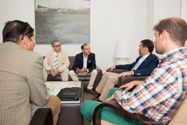 El alcalde, José López, ha recibido hoy viernes en su despacho del Palacio Consistorial a la junta directiva del Movimiento Europeo y la delegación del Foro Europeo de Murcia con sede en Cartagena, cuyo responsable es Luis Carlos García, una reunión de presentación en la que, además, se han tratado cuestiones de interés para la ciudad y ha contado con la presencia del concejal del Ãrea de Cultura y Patrimonio Arqueológico, Deportes y Juventud, Ricardo Segado.