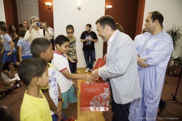 Cartagena vuelve a acoger durante estos meses de verano a un grupo de niños saharauis, como ya es tradición. Una quincena de niños saharauis han visitado el Palacio Consistorial donde el alcalde, José López, la vicealcaldesa, Ana Belén Castejón, el concejal del Ãrea de Calidad de Vida, Francisco Calderón, la edil delegada de Servicios Sociales, Carmen Martín, y la de Portal y Oficina de Transparencia, María José Soler, los han recibido esta mañana.