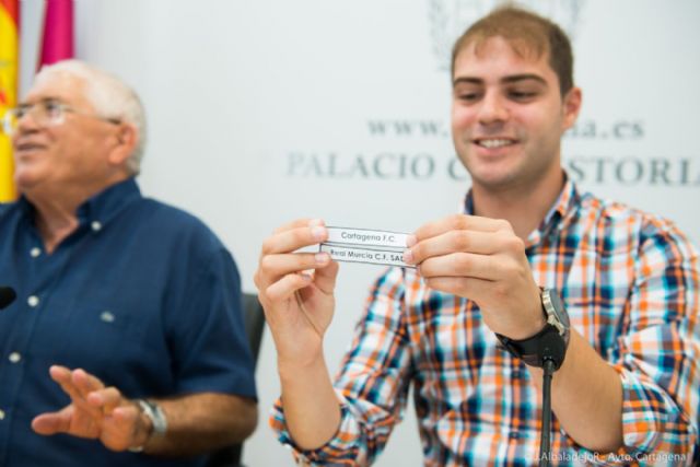 El concejal del área de Cultura, Patrimonio Arqueológico, Juventud y Deportes, Ricardo Segado, y el presidente del Cartagena F.C., José Gómez Meseguer, ha presentado este mediodía la XIX Carabela de Plata Juvenil, que disputarán el sábado 22 de agosto los equipos juveniles del Cartagena F.C., el Real Murcia, el UCAM Murcia y la ADM Lorquí, en las instalaciones de laCiudad Deportiva Gómez Meseguer del Polígono Cabezo Beaza.