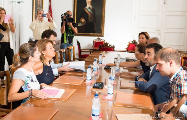El alcalde de Cartagena, José López, la vicealcaldesa, Ana Belén Castejón, el concejal del Ãrea de Cultura, Ricardo Segado y el edil delegado de Educación y Cultura, David Martínez Noguera, han mantenido esta mañana una reunión con la consejera de Educación, María Isabel Sánchez Mora, y la directora general de Centros, María Dolores Valcárcel, en la que han tratado las principales necesidades educacionales del municipio como la nueva ubicación del futuro centro educativo de La Aljorra.