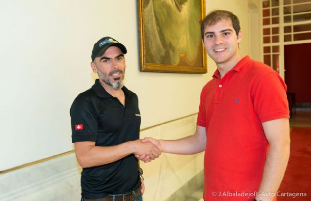 Este es el último reto de Jimbo Fresh 2015 de Andrés Lledó, y el ultramaratoniano ha querido acercarse hasta el Palacio Consistorial para despedirse del concejal del Ãrea de Deportes, Ricardo Segado.