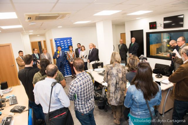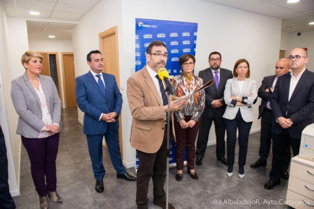 El alcalde de Cartagena, José López, y la vicealcaldesa, Ana Belén Castejón, han acudido esta mañana a la inauguración de la remodelación de las instalaciones de Radio Cartagena de la Cadena SER. También han estado presentes en este acto, la presidenta de la Asamblea Regional, Rosa Peñalver, consejera de Cultura, Noelia Arroyo; el director de Radio Cartagena, Antonio Rosas; el director regional de la Cadena SER, Domingo Camacho, y el director general de Operaciones de Prisa Radio en España, Francisco Vélez.