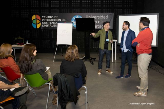 El afamado director de cine Pablo Berger, con gran experiencia en cursos de filmmaking de la prestigiosa New York Film Academy (NYFA), inauguró el sábado Film Camp de la La Base, Escuela de Cine del Mediterráneo, un acto en el que también estuvieron el concejal delegado de Cultura y Educación, David Martínez, y el coordinador del Centro de Producción de Contenidos Digitales de la UPCT donde tiene su sede la Escuela, Juan Luis Pedreño.
