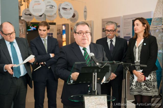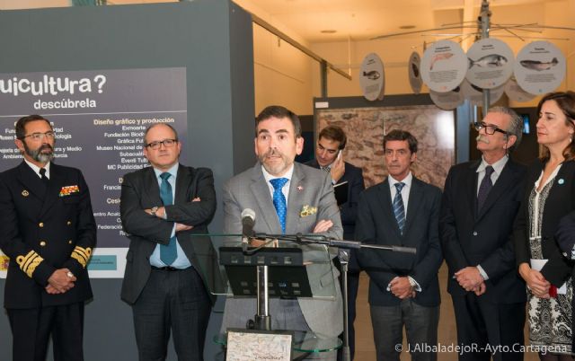 El Secretario General de Pesca del Ministerio de Agricultura, Alimentación y Medio Ambiente, Andrés Hermida, ha sido el encargado de inaugurar esta exposición que se presenta bajo el título de ¿Acuicultura? Descúbrela, impulsada por la Fundación Biodiversidad. Le han acompañado el Delegado de Gobierno de la Región de Murcia, Antonio Sánchez-Solís; el alcalde de Cartagena, José López; la vicealcaldesa, Ana Belén Castejón; y la concejala de Agricultura y Pesca, Obdulia Gómez.