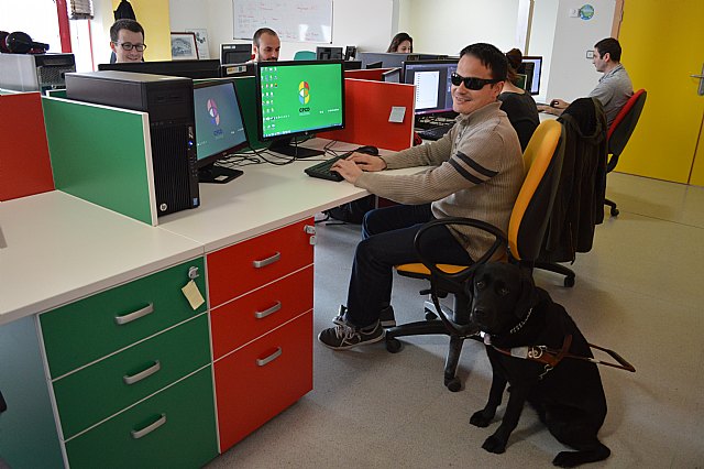 El Centro de Producción de Contenidos Digitales de la UPCT está realizando diversos proyectos para desarrollar material docente en HTML5 adaptado a  invidentes. Este servicio ha instalado un puesto informático con las mismas condiciones en las que trabaja una persona con discapacidad visual. De esta manera el desarrollador web puede experimentar con el software que utilizan los invidentes y enfrentarse a los mismos problemas que se tienen que afrontar ellos a diario.