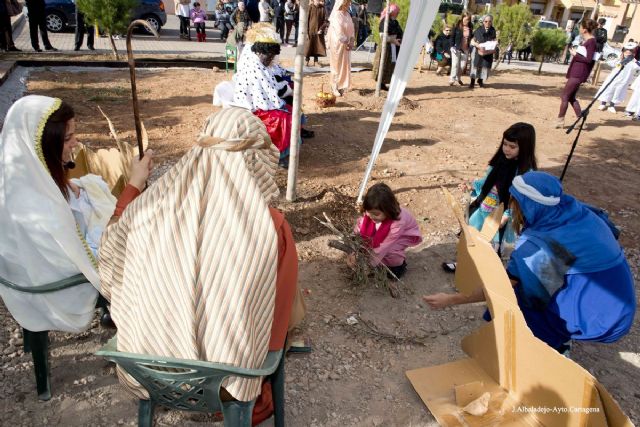 Los vecinos de la Asociación Cultural San Miguel-Coto Dorda dieron vida ayer Domingo 3 de Enero, a más de 40 personajes bíblicos para representar diversos pasajes de la Biblia como la Anunciación, Huida a Egipto, la Adoración de los pastores o de los Reyes Magos.