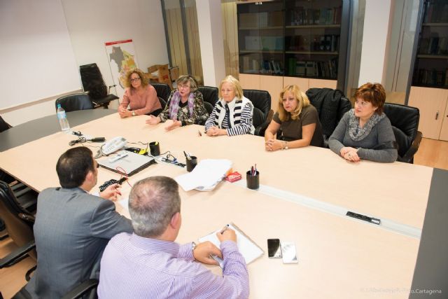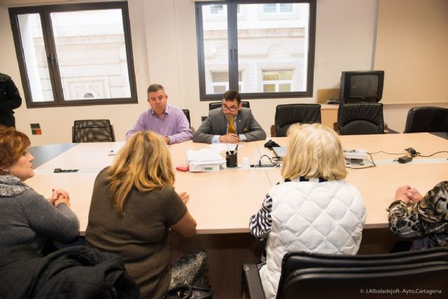 El alcalde de Cartagena, José López, y el concejal del área de Calidad de Vida, Francisco José Calderón, ha mantenido esta mañana un encuentro con la directora del centro San Pablo de Cáritas, María Trinidad Rosique, para informarles de la situación económica por la que atraviesa.