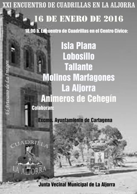El evento, que cuenta con la colaboración del Ayuntamiento de Cartagena, está organizado por la Cuadrilla y la Junta Vecinal Municipal de la Aljorra y tendrá lugar a las 18:00 horas en el Centro Cívico de la Aljorra