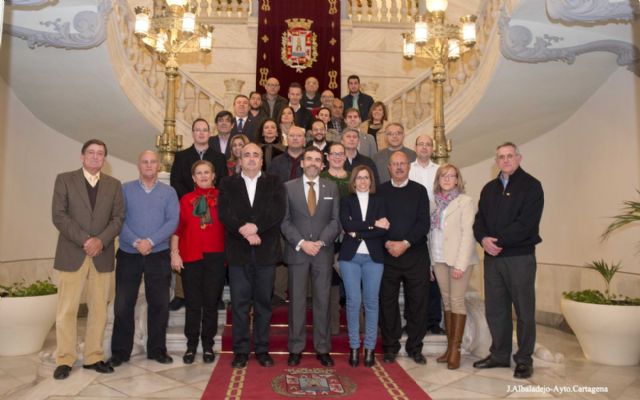 El alcalde, José López, y la vicealcaldesa, Ana Belén Castejón, presidieron ayer martes el inicio de la serie de contactos y reuniones que mantendrá periódicamente el Ayuntamiento con los responsables de las juntas vecinales municipales. Esta primera reunión se celebró en el Palacio Consistorial y contó además con la presencia del concejal de Descentralización, Juan Pedro Torralba, y otros miembros del Equipo de Gobierno.
