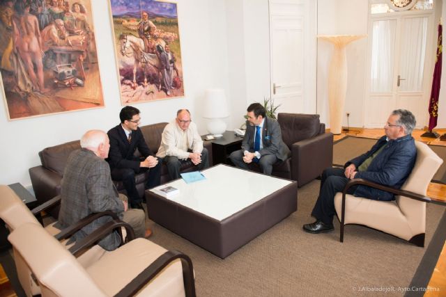 Una representación de los Juegos Florales de la Palma, encabezada por el presidente del centro cultural y deportivo de la Palma, José Escribano, se ha reunido esta mañana con el alcalde de Cartagena, José López, para ultimar los detalles de su labor como mantenedor en la próxima edición del certamen.
