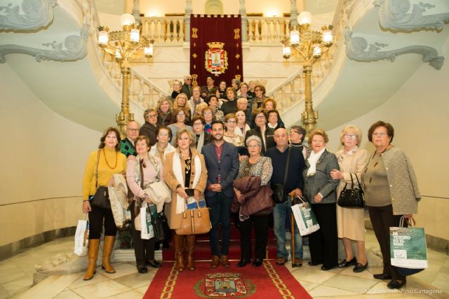 Alrededor de 40 mujeres de la Asociación de Amas de Casa de este municipio costero han realizado un recorrido de carácter cultural por distintos lugares emblemáticos de Cartagena. Una de las paradas obligadas ha sido el Palacio Consistorial, donde el concejal de Igualdad, David Martínez, les esperaba para recibirlas y darles la bienvenida a nuestra ciudad.