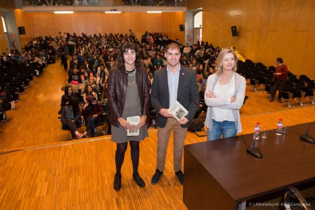 La jornada ha continuado con el tradicional encuentro ante 600 estudiantes de secundaria, ya en el Paraninfo de la UPCT, donde Cristina Sánchez-Andrade ha tratado de discernir entre las dos características de este libro: el tono de realismo mágico y el juego de misterio entre el secreto de Las Inviernas y lo que a su vez les esconde el resto de la aldea.