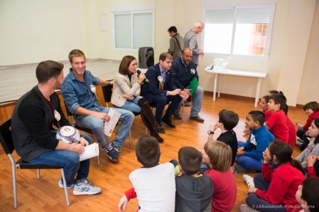 El programa ADE de la Concejalía de Deportes continúa con sus actividades para acercar la actividad física y deportiva a los barrios y a los más pequeños. Como parte de este proyecto, la vicealcaldesa, Ana Belén Castejón, ha visitado esta mañana los centros escolares Pipiripao y Ciudad Jardín, acompañada del concejal de Deportes, Ricardo Segado, y del director general del Fútbol Club Cartagena, Manuel Sánchez.