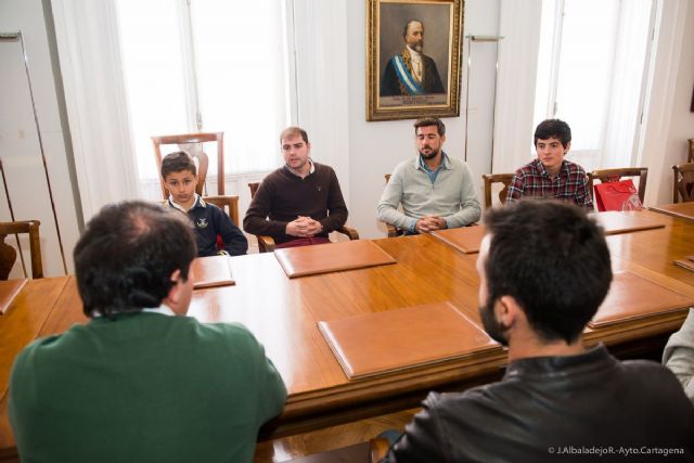 El tenis cartagenero representado por dos jóvenes con una gran proyección, Rafa Segado y Jaime Caldés, campeones de España de tenis en sus categoría, han sido recibidos hoy, lunes 15 de febrero, por el concejal de Deportes, Ricardo Segado.