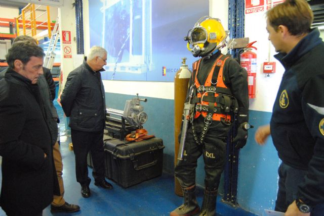 El delegado del Gobierno ha estado acompañado de Sergio Rodríguez Carbonell, Jefe de Salvamento Marítimo en Cartagena, Oscar Villar Serrano, Capitán Marítimo, y Manuel Durán, director general de Emergencias de la Comunidad Autónoma.