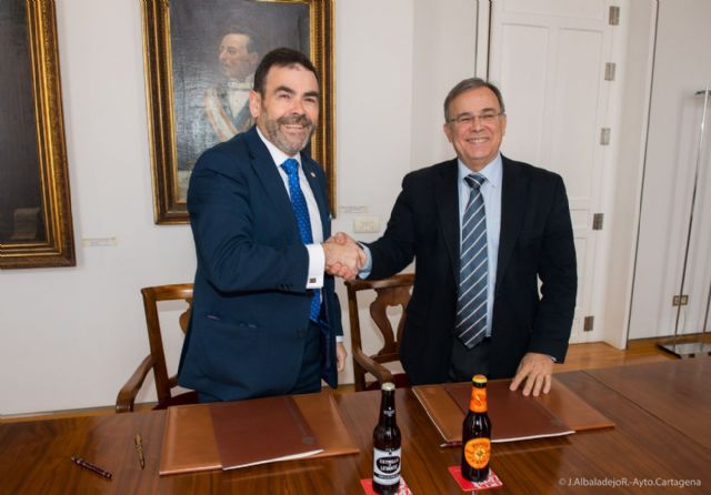 La Mar de Músicas y el Festival Internacional de Cine de Cartagena (FICC) son dos de las principales citas de la programación cultural del Ayuntamiento que se beneficiarán del convenio firmado hoy, lunes 29 de febrero, por el primer edil de la ciudad, José López, y el director general de la compañía Estrella Levante, Patricio Valverde, en las que la cerveza será el principal patrocinador. Cartagena Sabor y la Noche de los Museos también contarán con la participación de la empresa cervecera en su organización.
