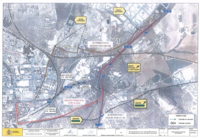 MUY DETERIORADO POR LA CONTAMINACIÃ"NLa Demarcación de Carreteras del Estado llevará a cabo esta obra unos días después de la Semana Santa y consistirá en la reparación del tablero, pilares y sustitución de los sistemas de contención del puente por otro más moderno y resistente.Dichas operaciones de mantenimiento permitirán reparar los daños en el puente, especialmente en el entorno de la antigua fábrica de Potasas y Derivados, debido al efecto negativo que han tenido las emisiones a la atmósfera sobre la estructura de la autovía A-30. La sustitución del sistema de contención (pretil) del viaducto, por otro más moderno, adaptado a la normativa del Ministerio de Fomento de 2014, requerirá el refuerzo de los bordes exteriores del tablero, siendo necesario realizar primero una demolición parcial del mismo, en una anchura superior a 1 m, para ejecutar un refuerzo de hormigón armado sobre el que apoyará la nueva barrera de seguridad.Para poder llevar a cabo estas actuaciones se utilizará maquinaría especializada de alta potencia, que obliga a cortar de forma completa y alternativa la calzada de entrada o de salida a la ciudad de Cartagena en la que se esté trabajando, ya que las actuaciones a realizar no se pueden llevar a cabo con tráfico, debido a la peligrosidad de una eventual salida de vía de un vehículo, que colisionaría contra las barreras provisionales ubicadas en el borde del tablero, pudiendo dar lugar a una caída con un gran desnivel, circunstancia que se podría agravar porque el viaducto pasa sobre la línea de FFCC Cartagena-Madrid.Durante la ejecución de las obras, cuyo tiempo estimado de duración es de cuatro meses, se efectuarán cortes de calzada alternativos: durante dos meses el sentido de entrada; y durante otros dos meses, en el sentido de salida.