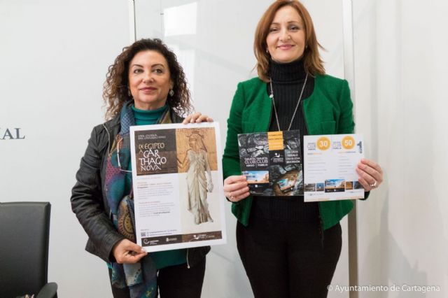 Exposiciones, visitas guiadas, rutas y talleres, conforman la novedosa programación de Cartagena Puerto de Culturas que, bajo el título De Egipto a Carthagonova, se va a desarrollar del 19 de marzo al 30 de junio, con el objetivo de dar a conocer la conexión de las distintas civilizaciones, desde el exotismo egipcio hasta la belleza clásica del imperio romano, protagonizados por faraones, diosas y emperadores, tal y como destacaba la concejala de Turismo, Obdulia Gómez, durante la presentación de estas actividades, en la que ha estado acompañada por la gerente de Puerto de Culturas, Agustina Martínez.