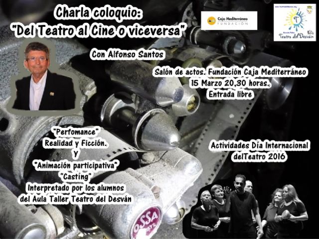 Con motivo de las actividades para el Día Internacional del Teatro, el Aula Taller del Teatro del Desván promueve una charla coloquio de la mano de Alfonso Santos. Del teatro al cine o viceversa hablará sobre la incidencia del teatro en el cine, haciendo hincapié en las que han sido adaptadas a este medio.