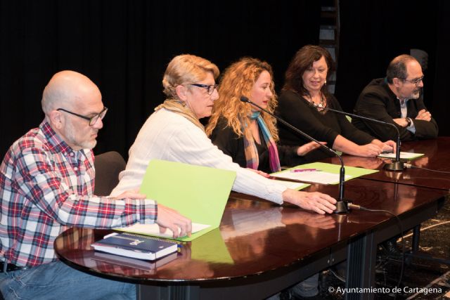 La recién estrenada Plataforma de artes escénicas ha presentado hoy, miércoles 2 de abril, sus principales líneas de actuación en el centro cultural Ramón Alonso Luzzy. Allí se han dado cita la directora de la compañía del Teatro Apolo del Algar, Mercedes García Gómez; el director de Aladroque Teatro, Lito Campillo; la encargada de la comisión encargada de los actos del Día del Teatro, Mónica Villalba y el coordinador de Cultura del Ayuntamiento de Cartagena, Patricio Hernández.