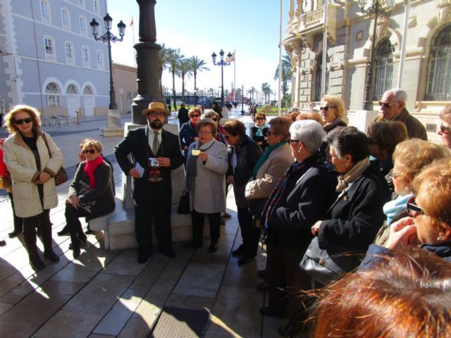 40 mayores de los cursos De las letras a la imagen y Tradiciones populares, que la Concejalía de Servicio Sociales está desarrollando dentro del programa formativo dirigido a personas mayores; realizaron ayer martes, una ruta por el Casco Antiguo de la ciudad, denominada Estampas Cartageneras.Los diferentes hitos de esta ruta estuvieron escenificados por la compañía de teatro Ditirambo con José Antonio Ortas, su director y varios actores que han interpretado personajes populares de nuestra historia, como José Casaú, María Chiquero, Isidoro Maiquez y Caridad la negra, entre otras.Durante el recorrido por los distintos puntos emblemáticos de la ciudad los mayores conocieron los diversos pasajes de nuestra historia, terminando en El Soldadito de Plomo donde los alumnos han degustaron láguenas y reparos.