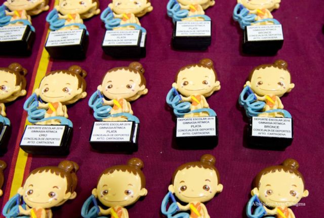 Al final realizaron una exhibición los Clubes del Proyecto Gimnasia Cartagena, que vienen colaborando con la Concejalía de Deportes desde 1986, el Club Gimnasia San Antón, Campeonas de España en 2015 en la modalidad de Gimnasia Estética de Grupo, así como Paula Enríquez con mazas y Valeria Rafalska con cinta, ambas campeonas regionales la temporada pasada pertenecientes al Club Rítmica Cartagena.