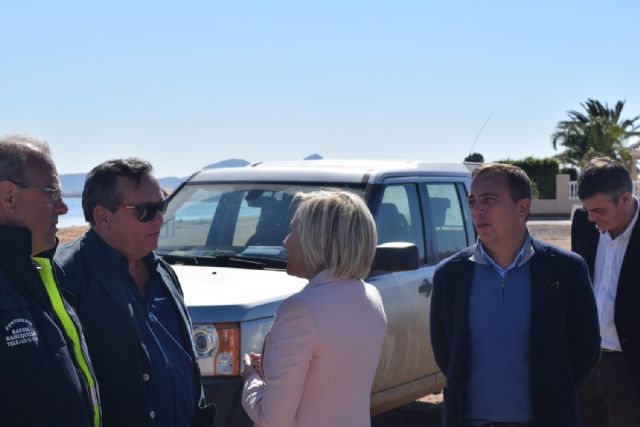 El portavoz popular Francisco Espejo junto a la consejera de Agricultura, Adela Martínez-Cacha, y concejales populares, han mantenido un encuentro con vecinos de Los Urrutias para conocer de primera mano la evolución de las obras de retirada de espigones