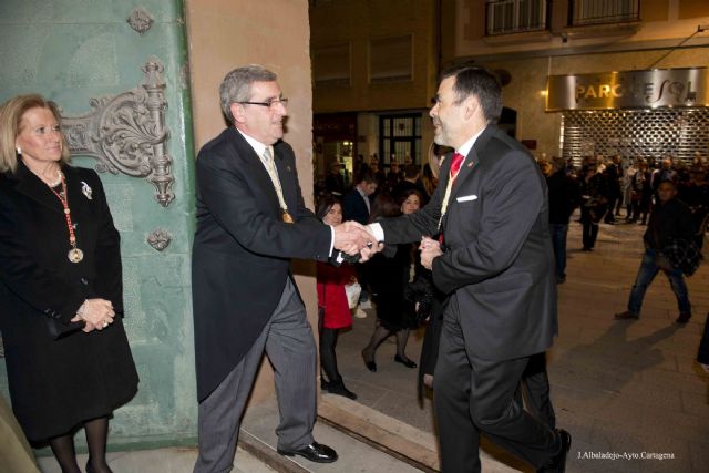 Este principal acto de Cuaresma de la cofradía colorada contó con la asistencia del alcalde, José López, la vicealcaldesa, Ana Belén Castejón, el concejal del Área de Calidad de Vida, Francisco José Calderón, la concejala delegada de Hacienda, Isabel García, la concejala delegada de Servicios Sociales, Carmen Martín, la concejala de Turismo, Obdulia Gómez, la concejala del Portal de Transparencia, María Josefa Soler, y el concejal delegado de Cultura,David Martínez, así como miembros del resto de grupos municipales, autoridades civiles y militares. Además, en esta ocasión también estuvo presente el presidente del Gobierno regional, Pedro Antonio Sánchez.