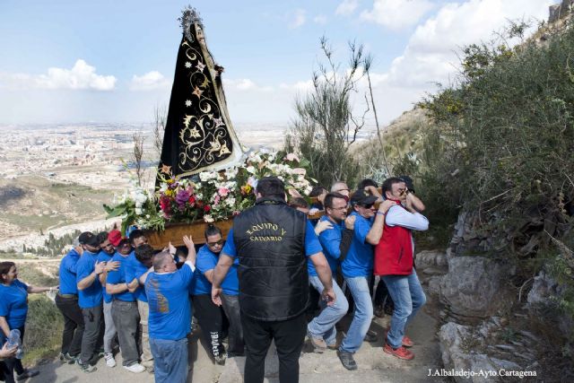 El alcalde, José López, participó activamente en este acto portando la imagen hasta su llegada al monte, junto a fieles y al almirante del Arsenal, Marcial Gamboa, entre otras personas.