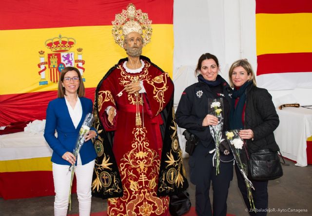 El acto que ha tenido lugar hoy, 21 de marzo, en el Arsenal Militar, ha corrido a cargo de la camarera de la agrupación del San Pedro, María del Carmen Arribas Ros, y ha contado también con la asistencia de la mujer del alcalde de Cartagena, Flori Pérez; de la esposa del Almirante, Rocío García de Lomas; así como de la hija del primer edil de Cartagena, Conchi López Pérez, que es madrina de la agrupación de Damas del San Pedro.