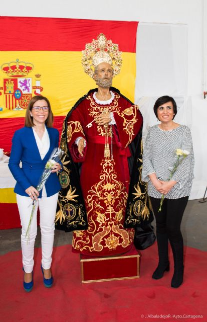 El tradicional acto en el las mujeres de la agrupación california engalanan la imagen del San Pedro ataviándola con la vestimenta el día previo al Martes Santo, ha contado con la presencia en esta ocasión de la vicealcaldesa de Cartagena, Ana Belén Castejón.