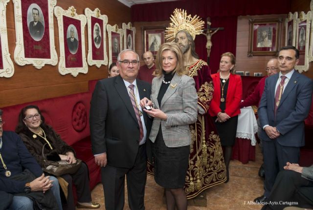 El alcalde, José López, asistió a este acto en el que se lució la túnica restaurada, que tras varias modificaciones en los últimos años, se le ha puesto un nuevo terciopelo para que vuelva a su estado original.