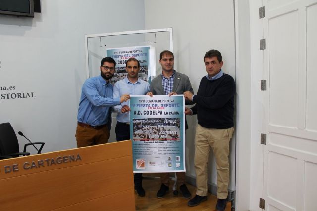 La presentación de esta actividad deportiva ha tenido lugar hoy, 1 de abril, en el Palacio Consistorial y el concejal de Deportes del Ayuntamiento de Cartagena, Ricardo Segado, ha sido el encargado de detallar todas las modalidades deportivas de las que se podrán disfrutar en la Fiesta del Deporte en la calle de La Palma. El edil ha estado acompañado por José Miguel Meroño, presidente de la asociación deportiva CODELPA de La Palma; por Domingo Inglés, coordinador de las actividades; y por Alberto Sánchez, coordinador de fútbol sala.